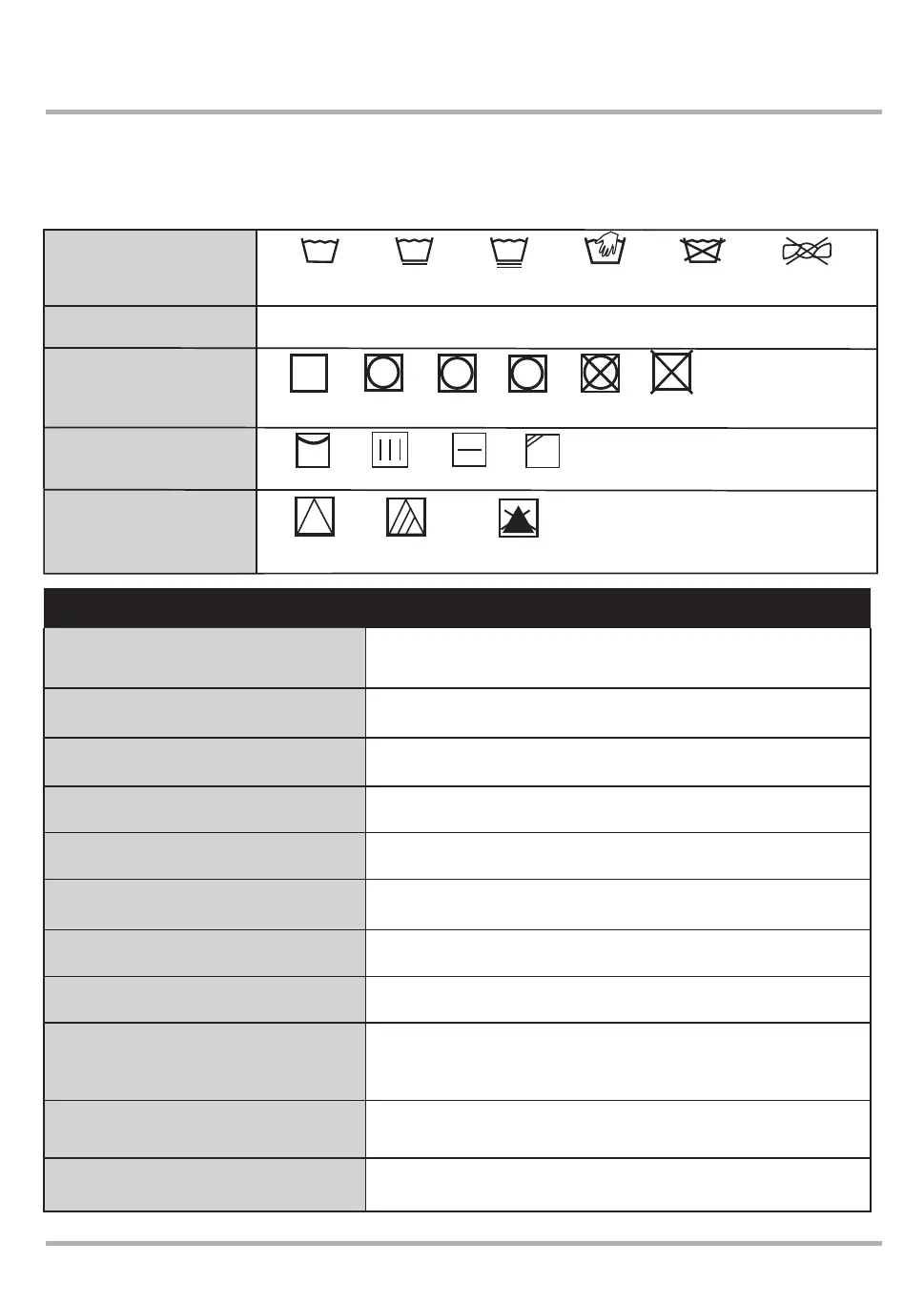 Garment labels contain important washing and drying instructions, often using small symbols. This table will help you interpret these