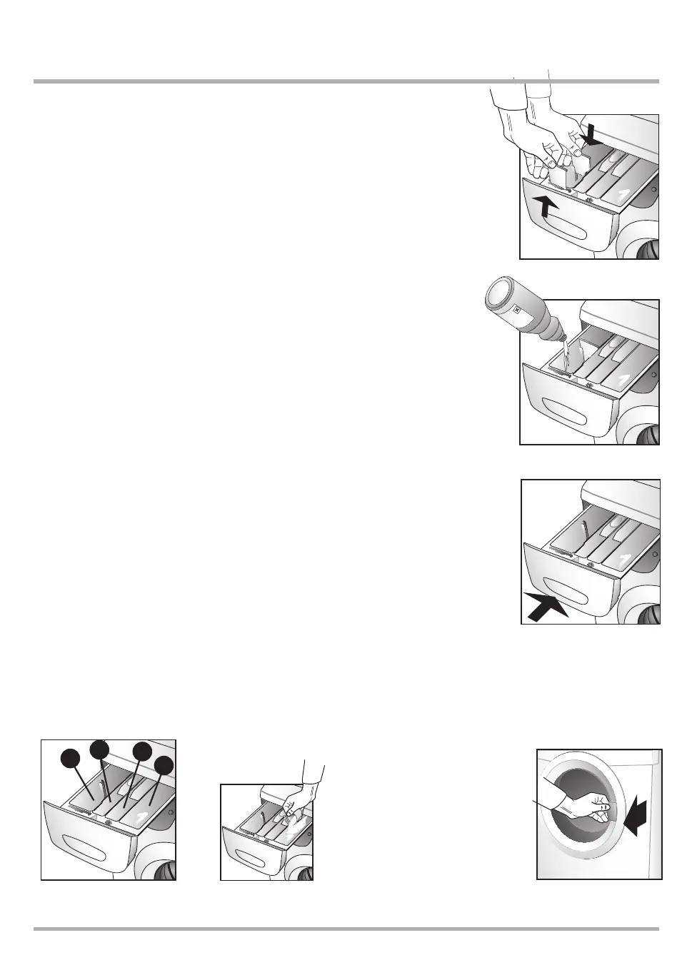 The dispenser drawer has 4 compartments, for (1) pre-wash, (2) main