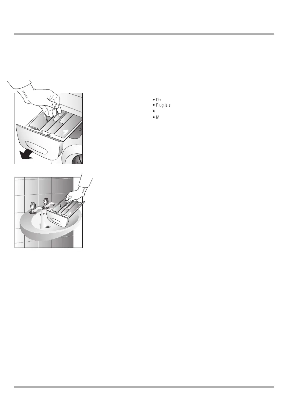 wash out of the drawer. Use only (HE) powdered detergent in the pre-