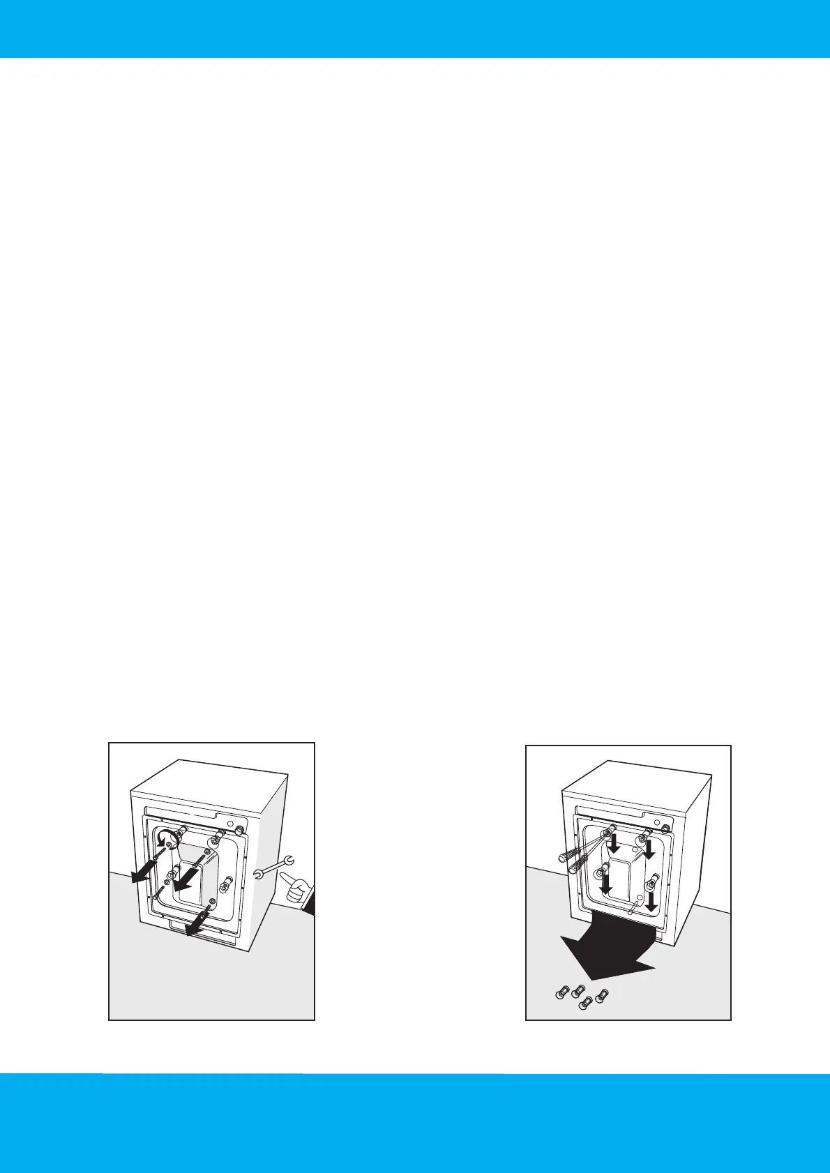 N.B. If the spacers cannot be removed from the machine in this way, open the rear panel, remove them