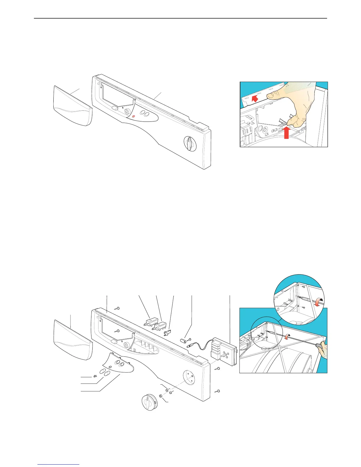 pannello comandi e recuperare, sganciandola, la placca pulsanti (B032), l' inserto fissaggio (B069) della