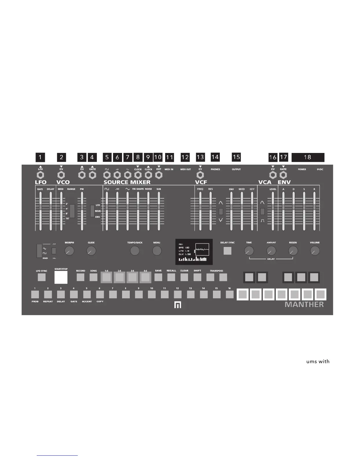 11 MIDI INPUT: Receives MIDI clock. CC messages are planned for a software future release.