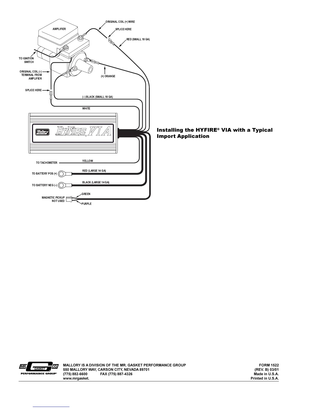 MALLORY IS A DIVISION OF THE MR. GASKET PERFORMANCE GROUP