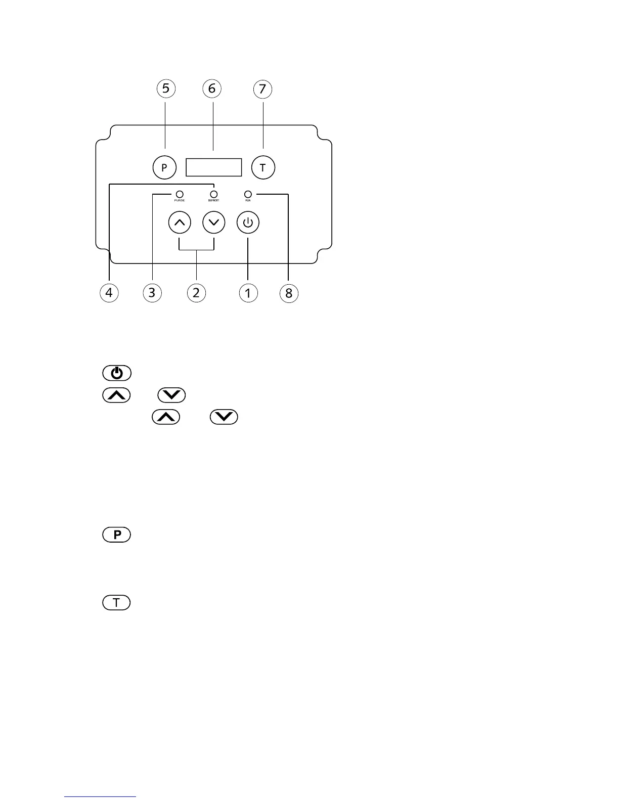 PURGE: Tryck på PURGE-knappen för att tömma vatten från pumpbehål-