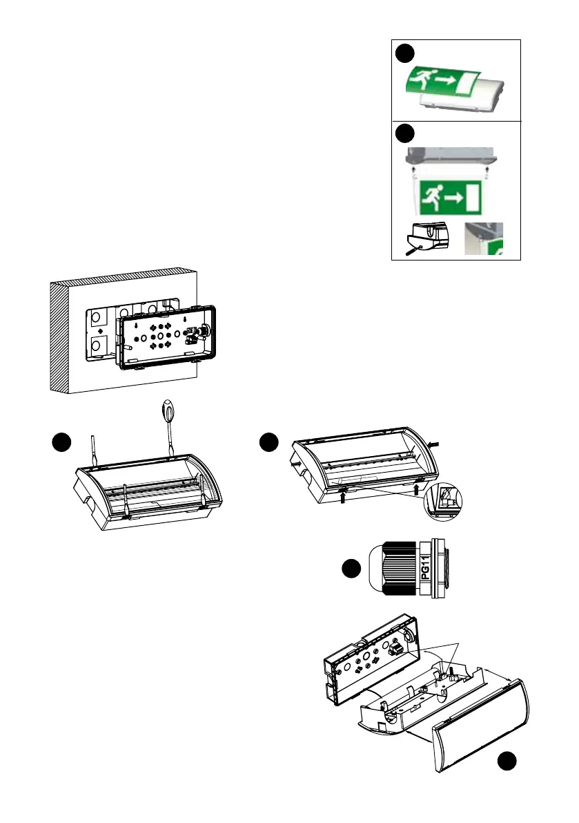 1. Två piktogram med pil höger/vänster och ned medföljer.