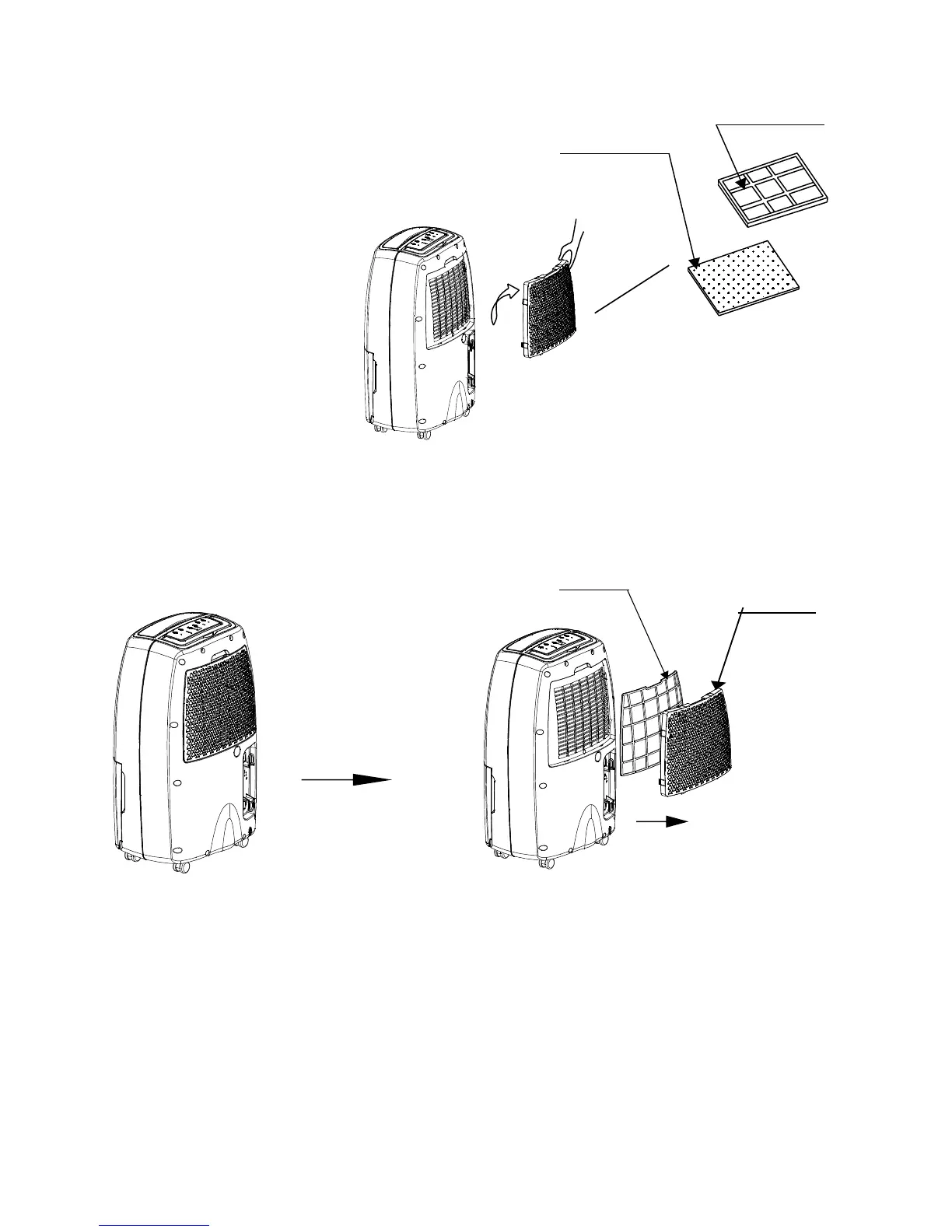 • To dislodge the dust from these filters, use a vacuum cleaner or pat them lightly.