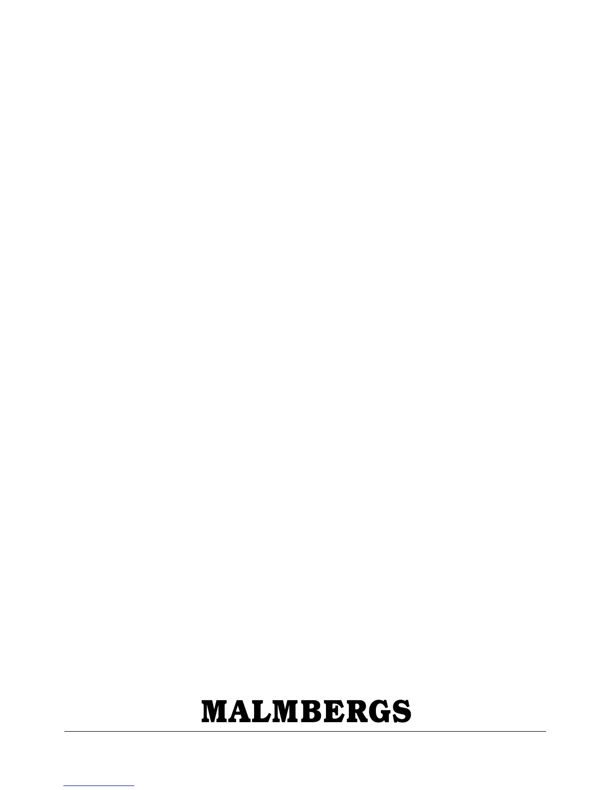 Phone: +46 19 58 77 00 Fax: +46 19 57 11 77 info@malmbergs.com www.malmbergs.com