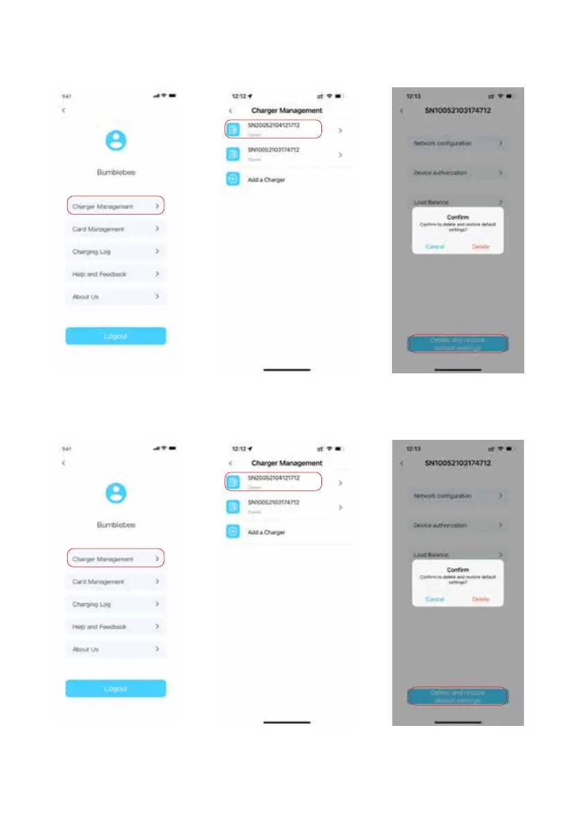 After delete/reset, the charger will be reset to the initial status automatically, that is,