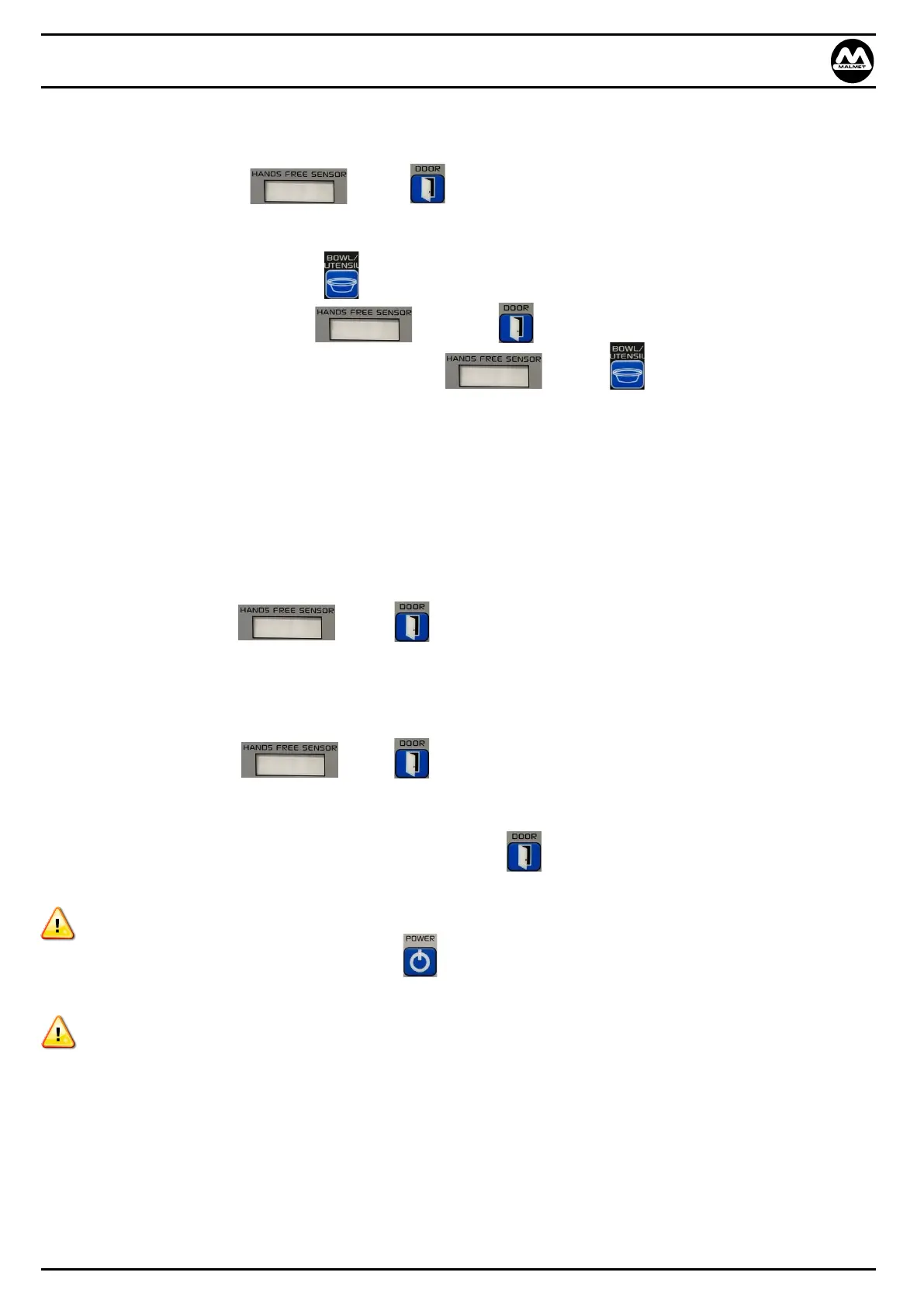3.6 Bowl / Utensil – Operating Cycle (Refer to laminated quick reference instructions)