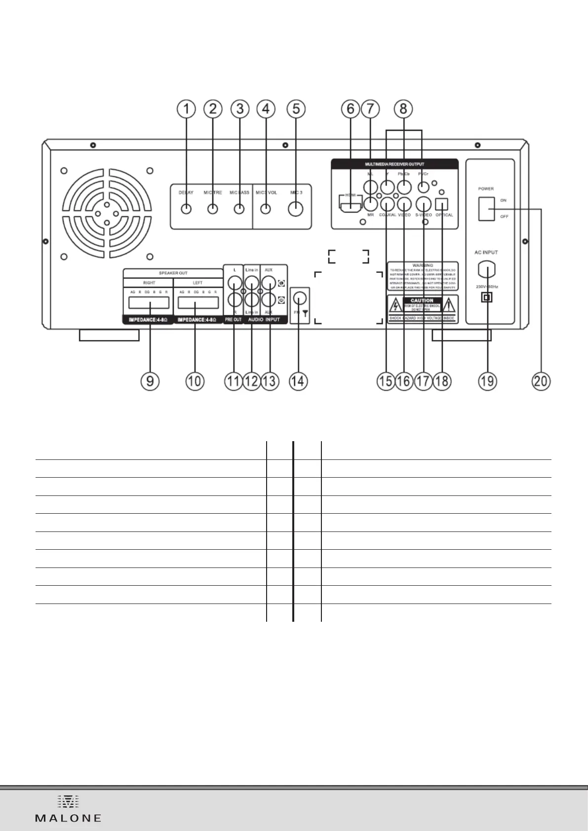 Speaker L Out 10 20 Power ON/OFF