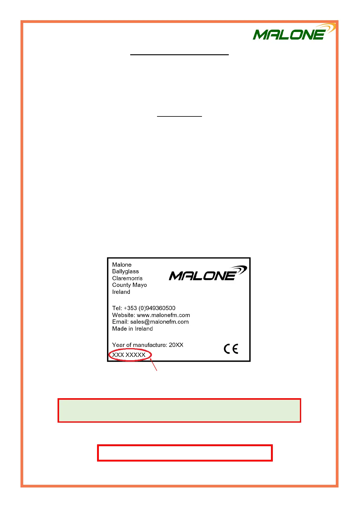 • Year of manufacture