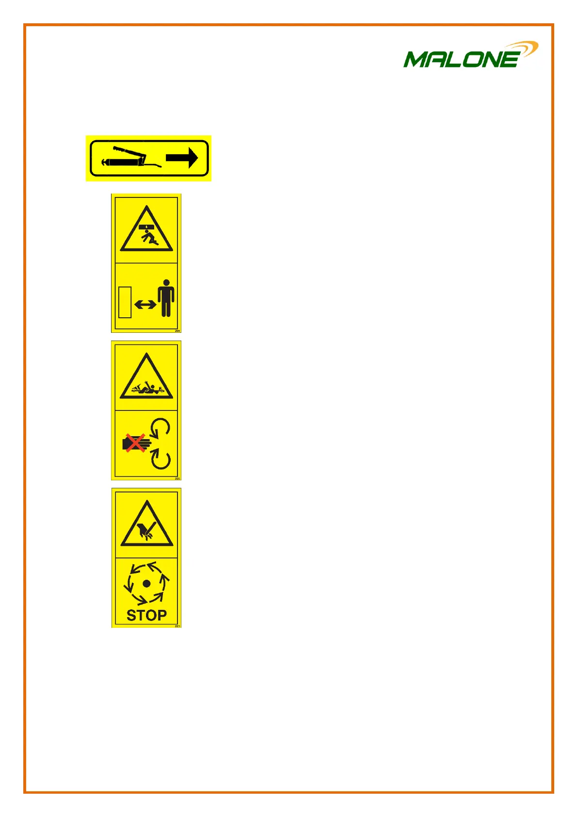 This decal shows the grease points on the machine. Greasing is