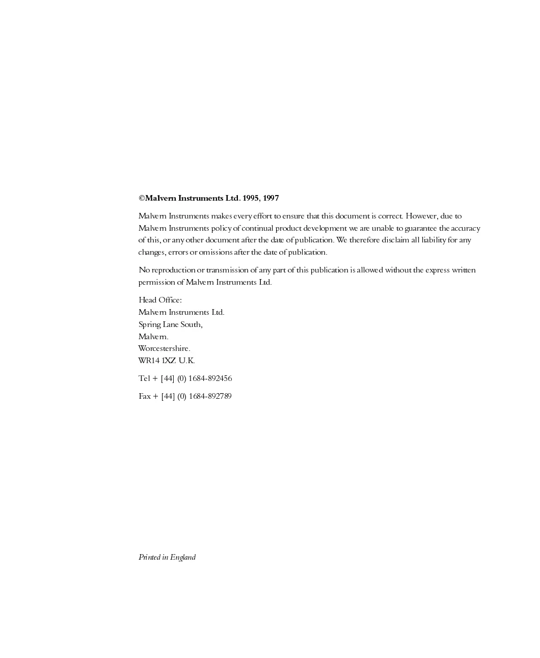 ©Malvern Instruments Ltd. 1995, 1997