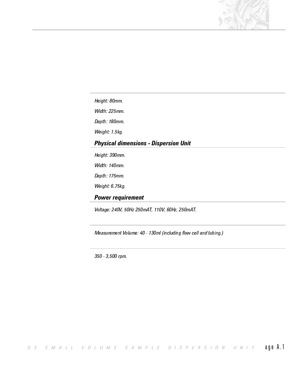 This specification covers the Small Volume Sample Dispersion Unit only. For