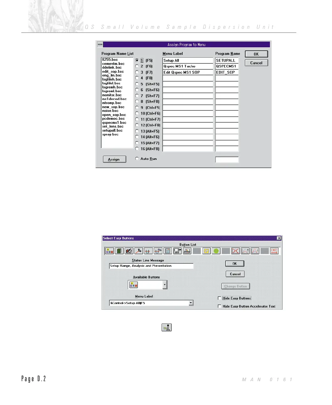 From the Mastersizer program set up the button bar: