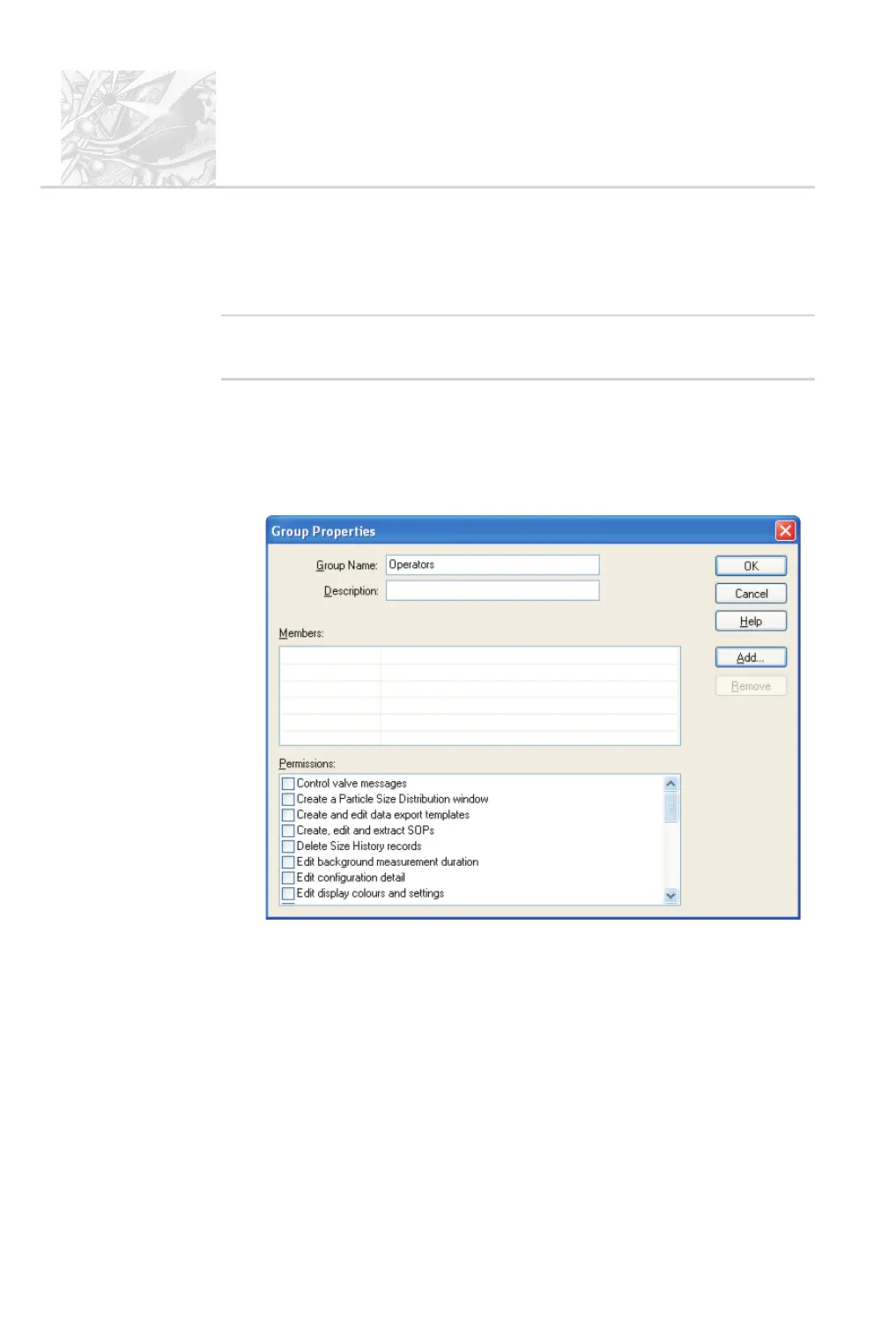 double-click on an empty Groups row to display the Group Properties