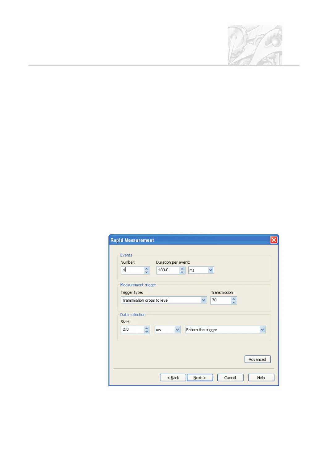 drops to level trigger starts measurement when transmission has fallen to 70%
