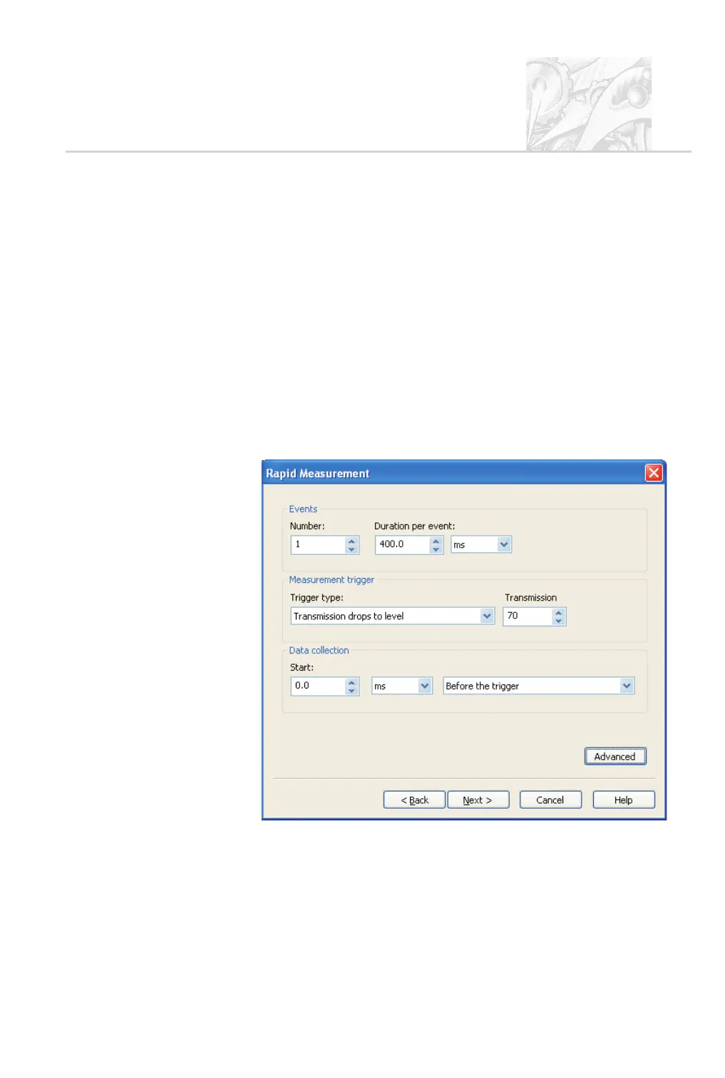 put trigger check box. Clicking Next there opens the Rapid measure