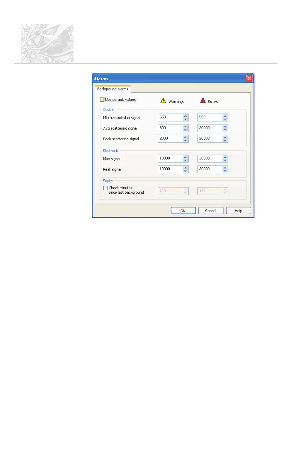 Peak scattering signal – this alarm is triggered when any detector reaches