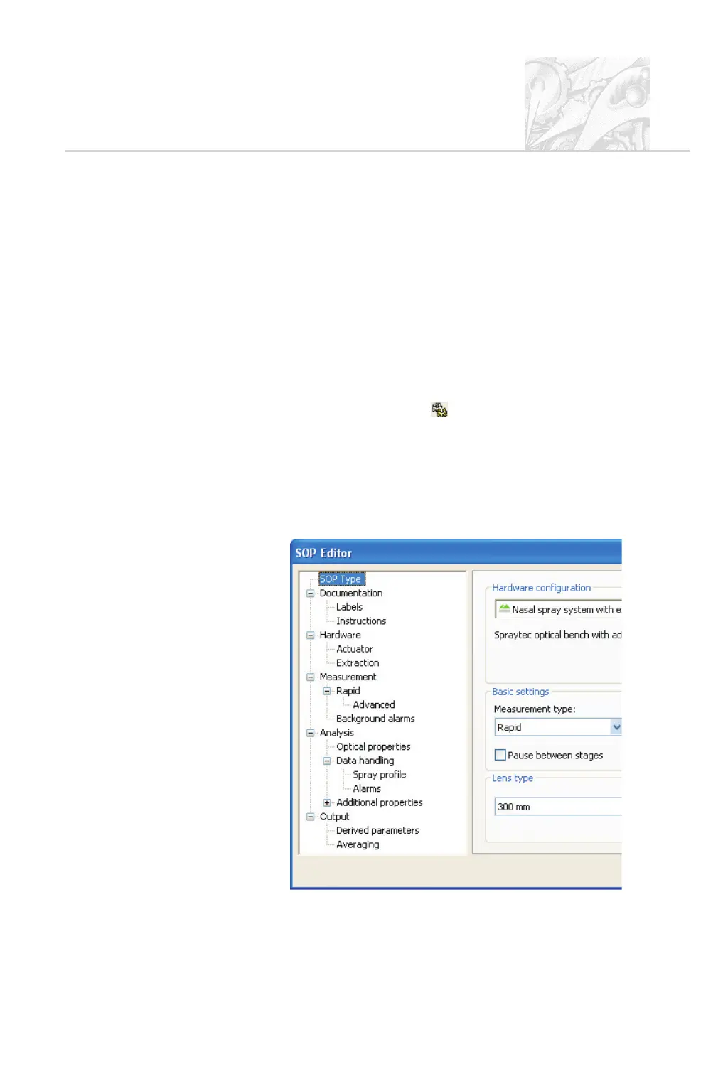 The SOP Editor has all the same dialogues as the SOP Wizard.