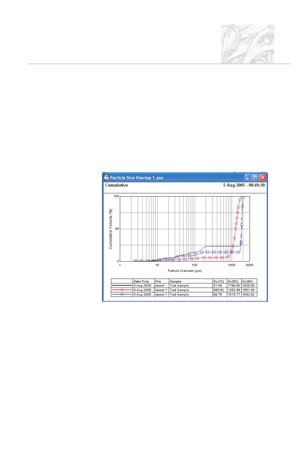 An overlay is used to compare data from up to eight Particle Size Distributions.
