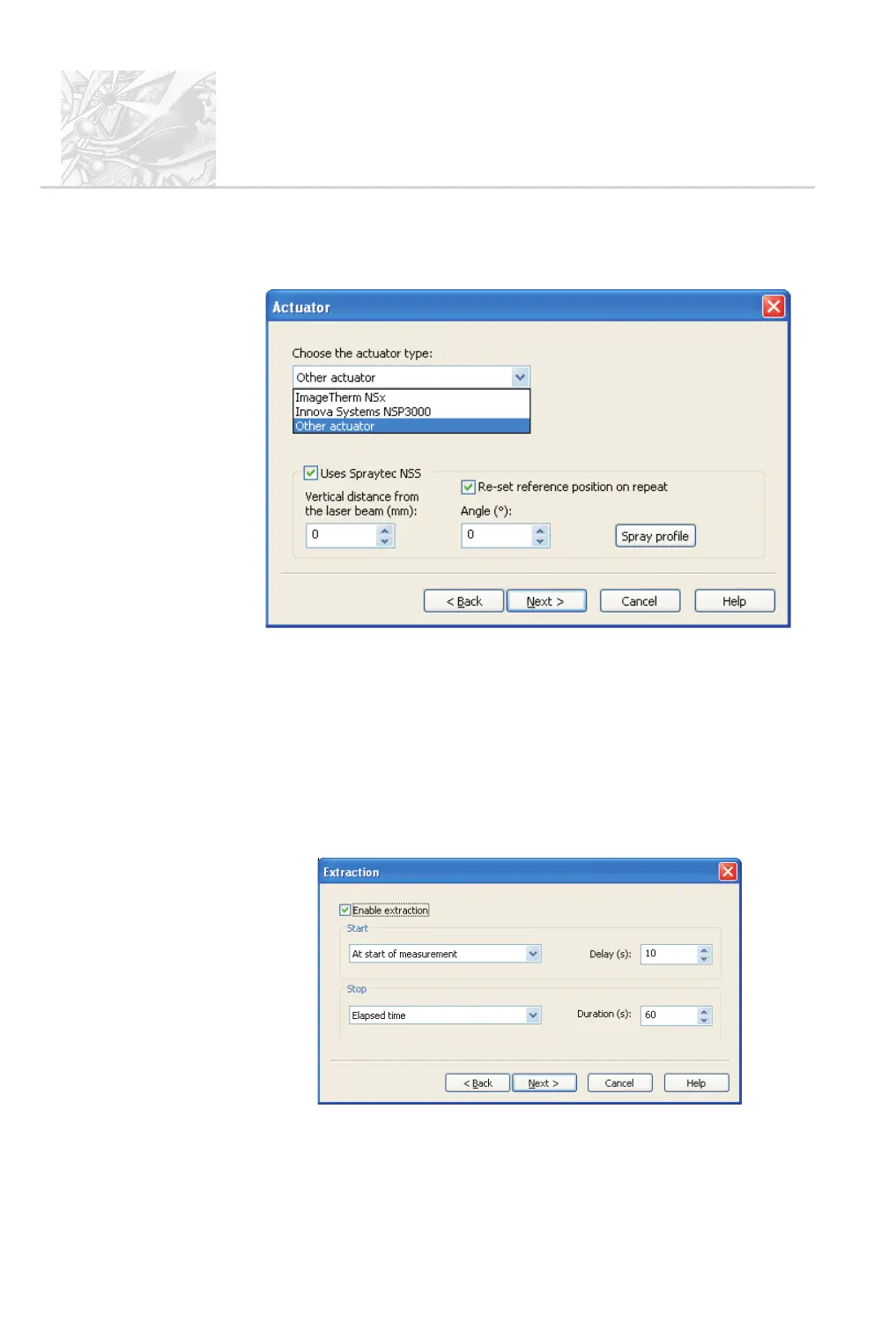 If extraction has been selected the Extraction dialogue appears: