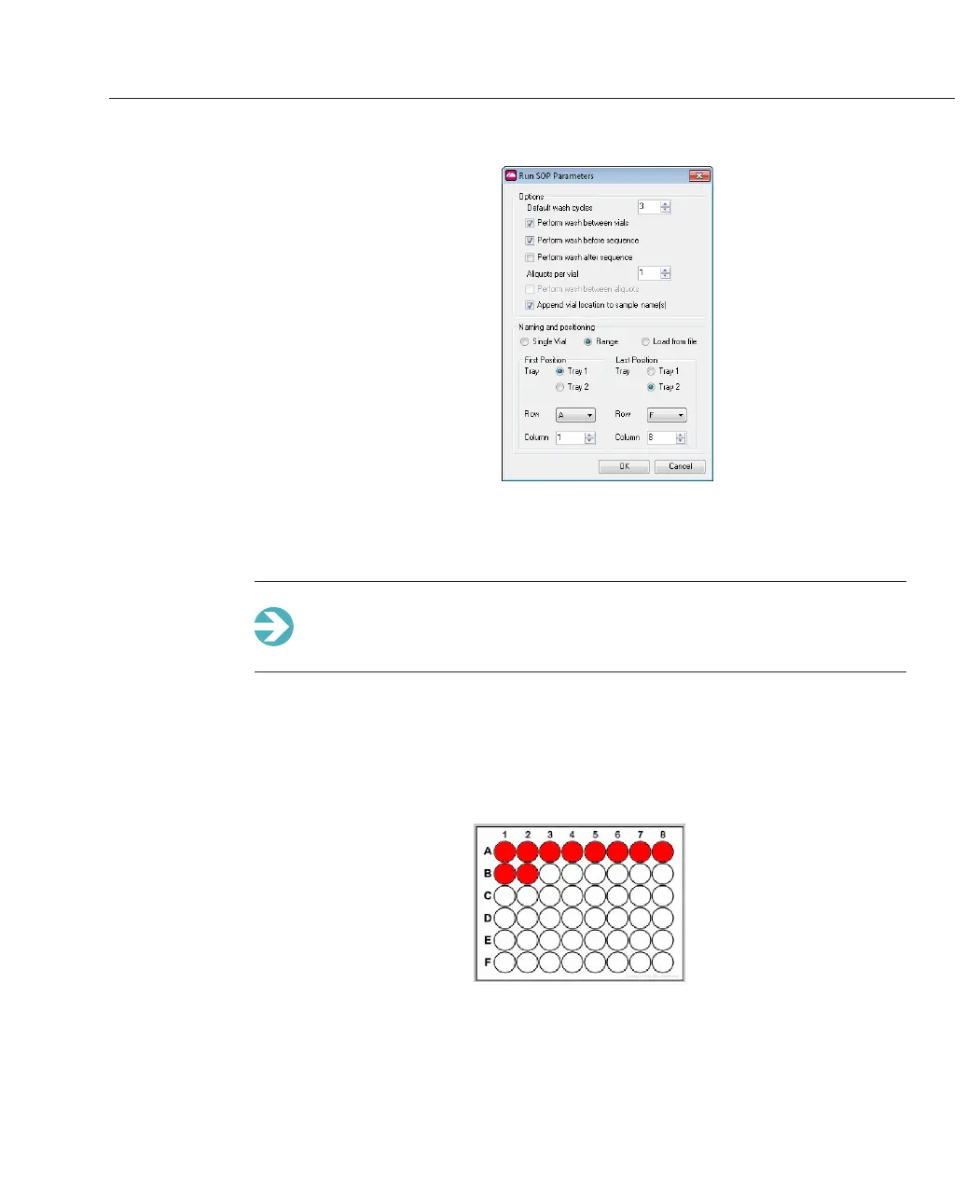 Note: using this method, vials must be placed in the plate in sequence - it is