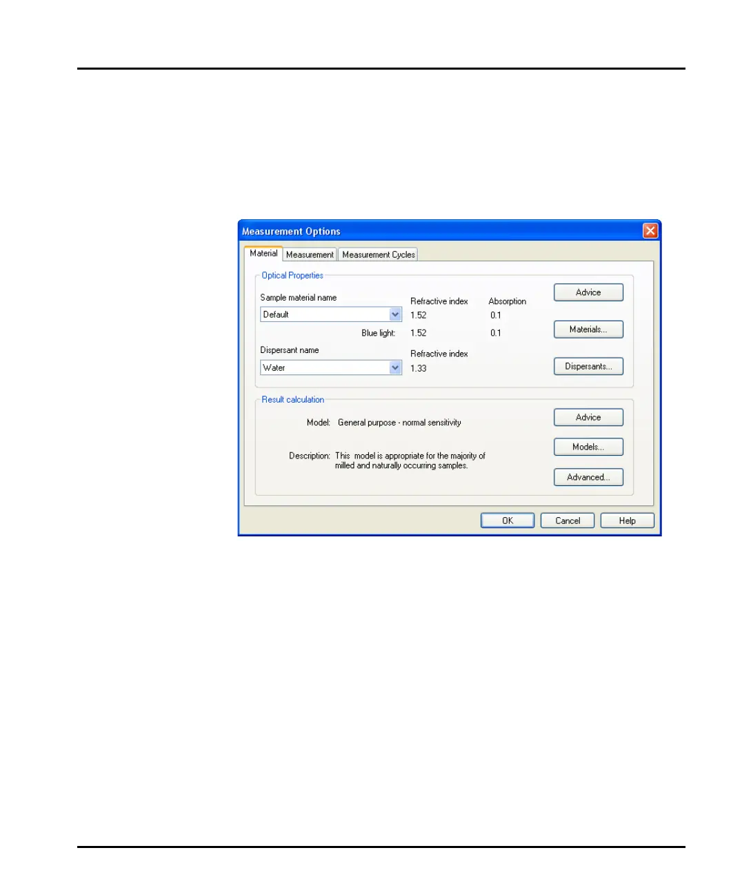 2. Press the Options button to open the Measurement Options dialogue:
