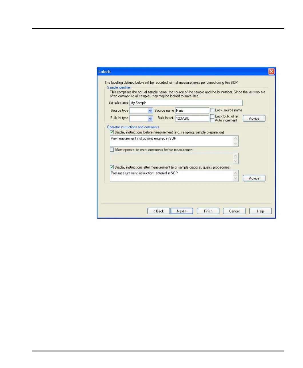 This dialogue allows an identifier for the sample to be added, uniquely identifying