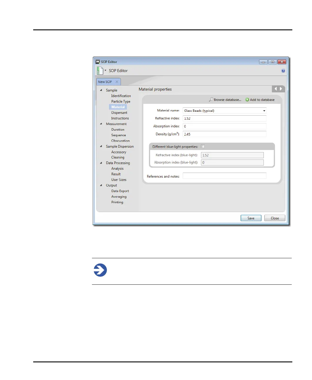 3. The SOP Editor window is now displayed as illustrated (the Material set-