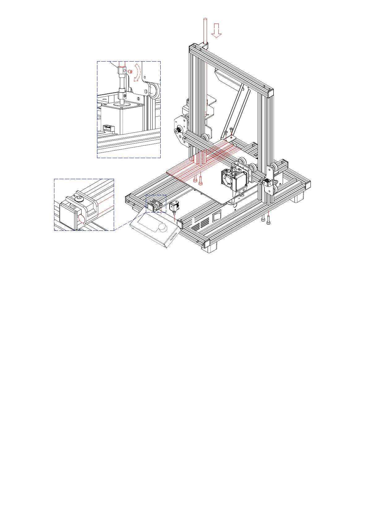 2.5mm hex wrench and 4x M5x20 screws to secure the vertical frame