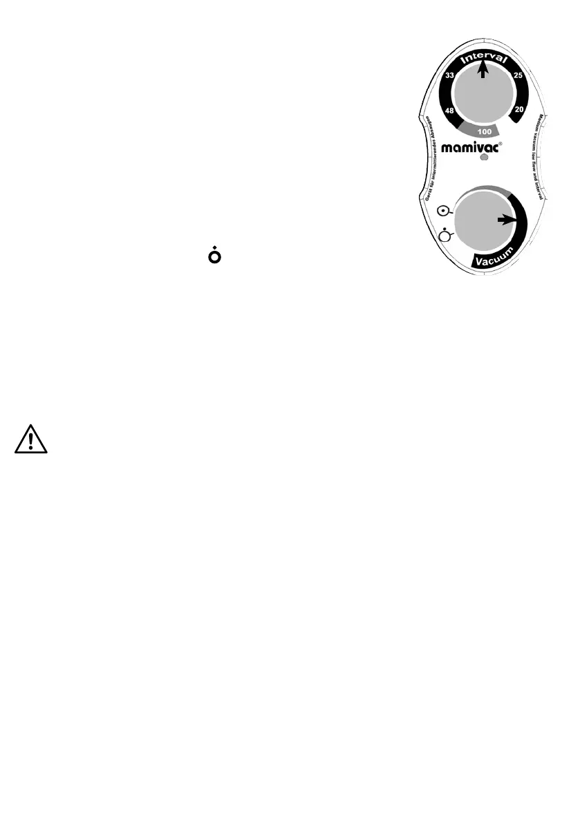 • Turn the vacuum control indicator to the area marked grey (higher vacuum).