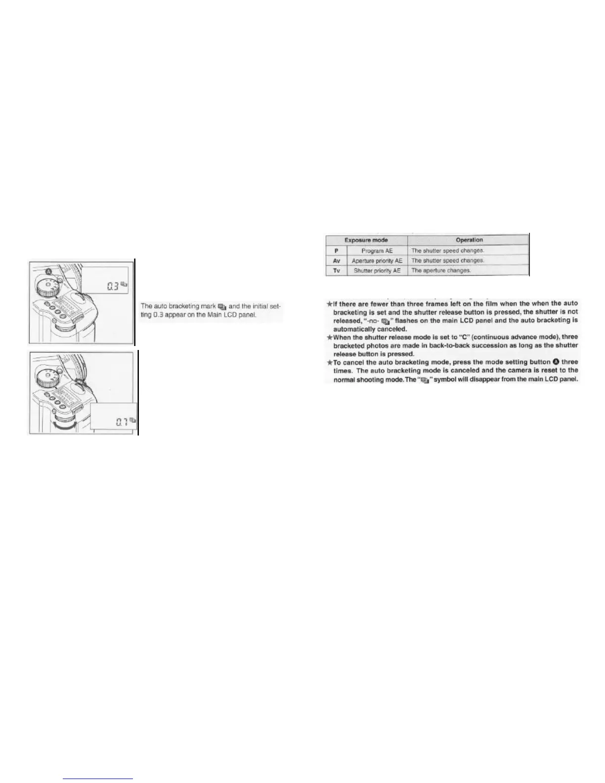 *In the auto bracketing mode, three photos are taken in succession. Be sure to