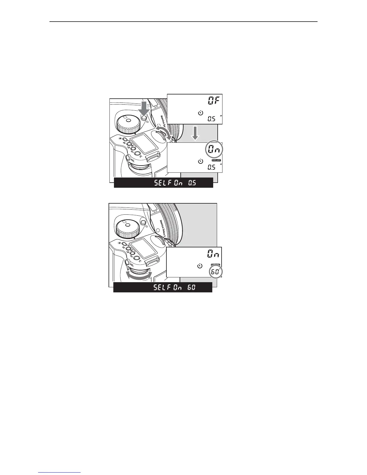 To change from the self timer setting to the mirror up setting, press the shutter button so the