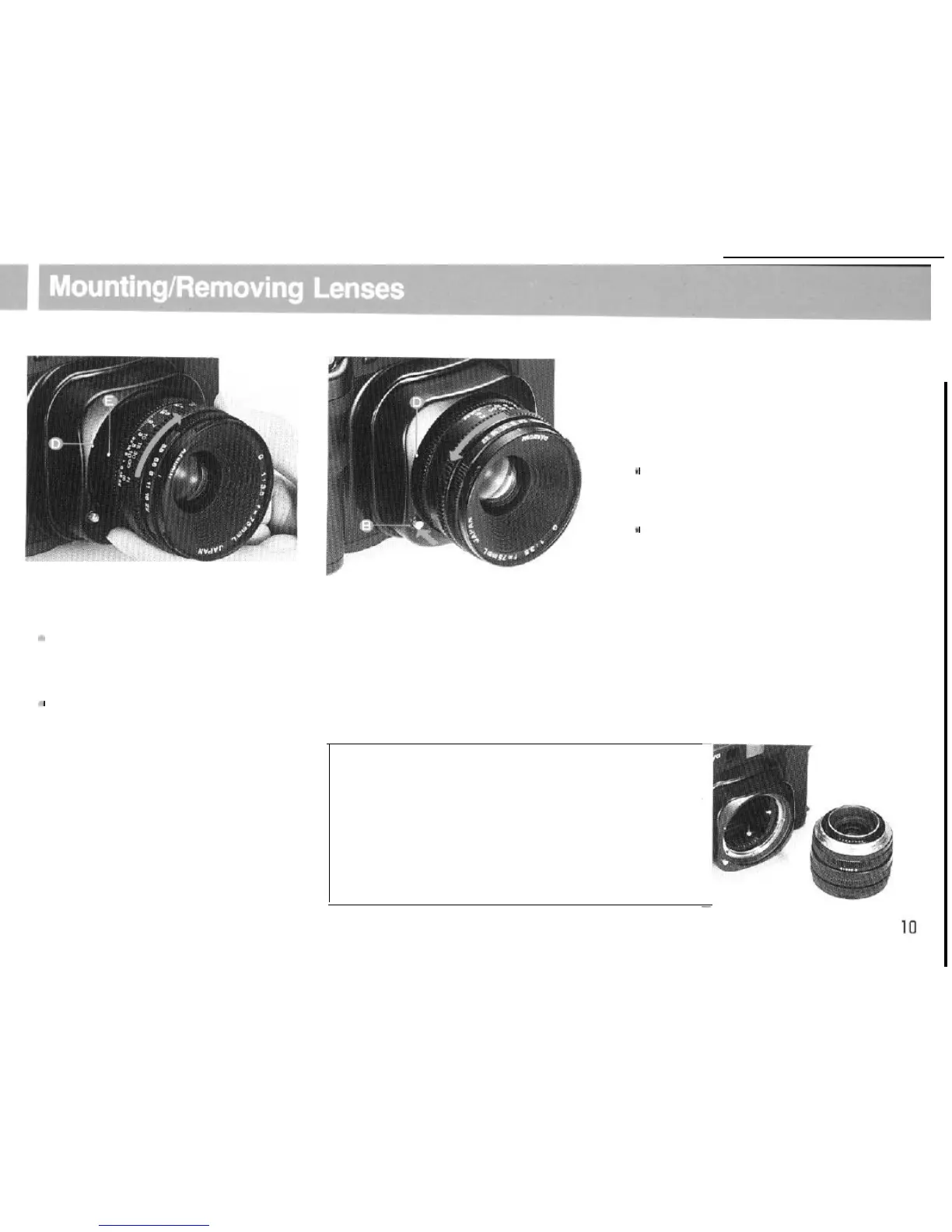 Mamiya 6MF - Mounting and Removing Lenses; Lens Mounting Procedure; Lens Removal Procedure