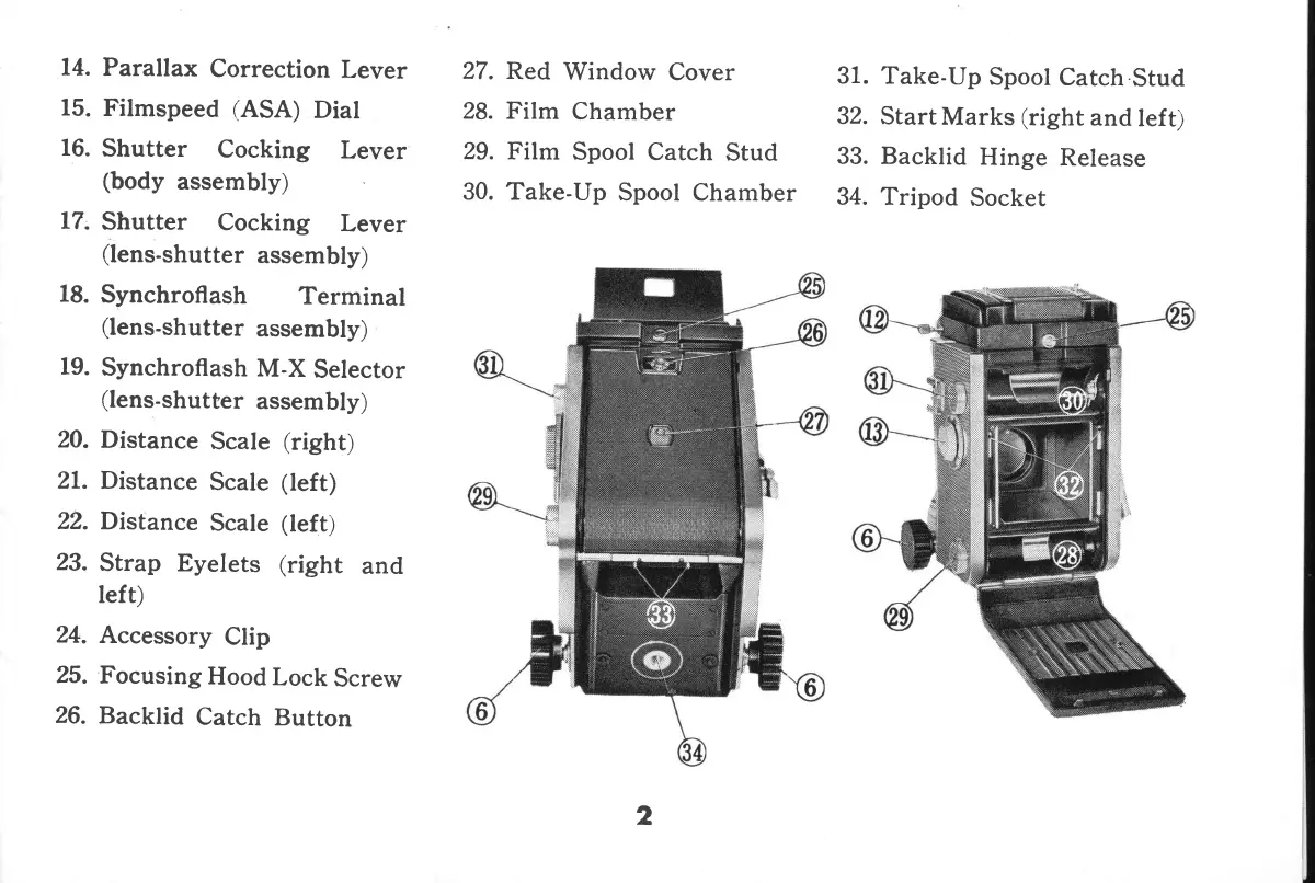 Mamiya C33 Professional - Parallax Correction Lever; Filmspeed (ASA) Dial; Shutter Cocking Levers