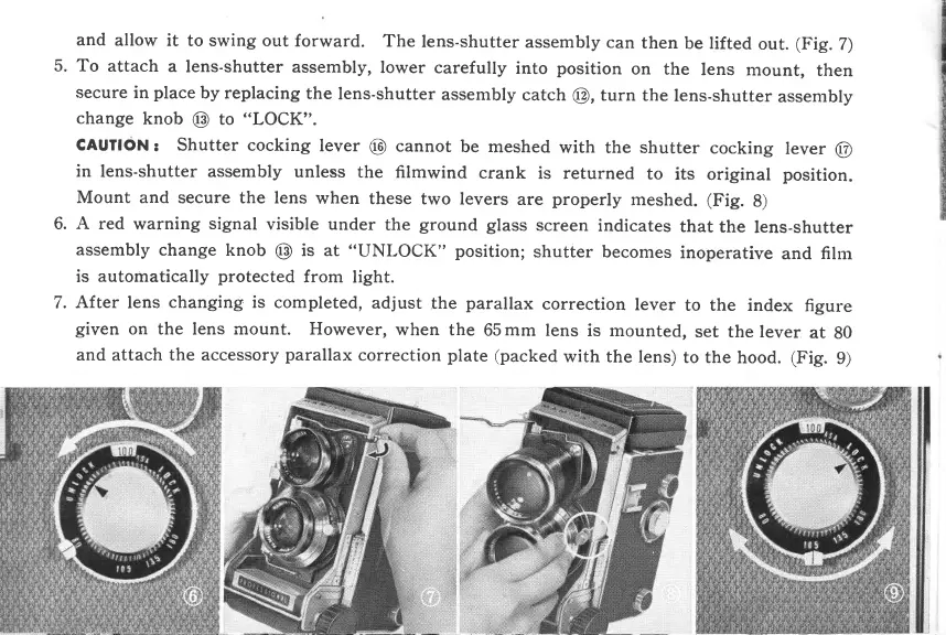 Mamiya C33 Professional - Attaching Lens-Shutter Assembly; Parallax Correction Lever Adjustment