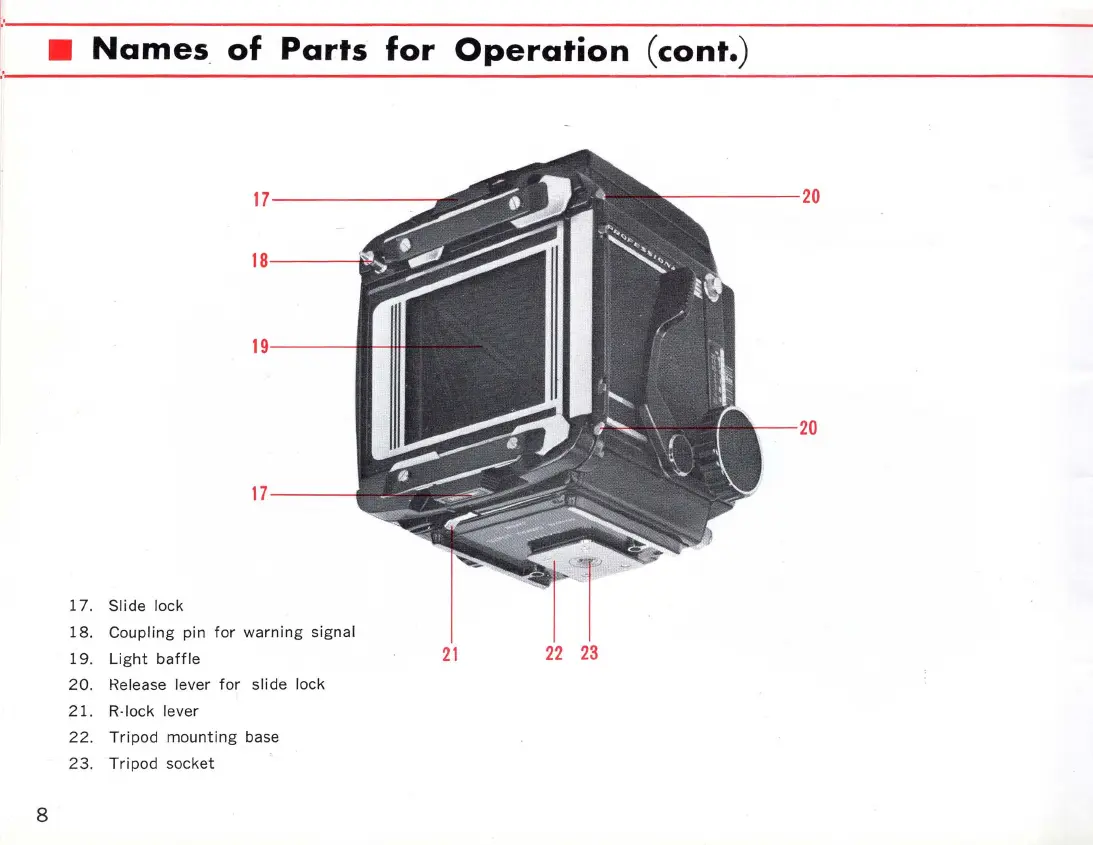 Mamiya RB67 - Camera Body and Component Identification (cont.); Camera Back and Tripod Mount