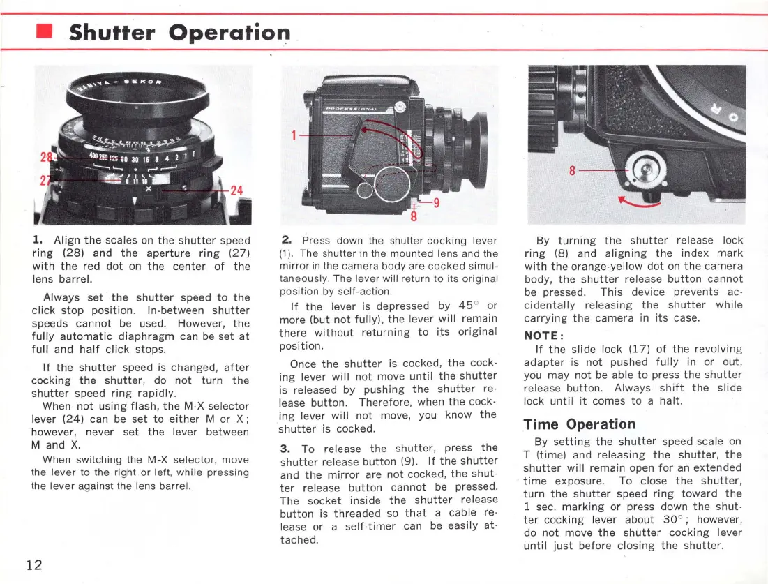 Mamiya RB67 - Shutter Operation; Setting Shutter Speed and Aperture; Cockling and Releasing the Shutter