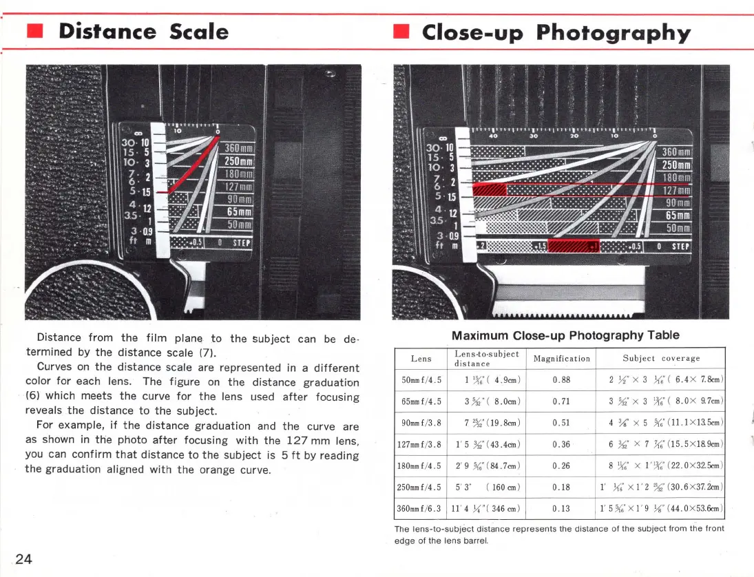 Mamiya RB67 - Distance Scale and Close-up Photography; Understanding the Distance Scale; Maximum Close-up Photography Table