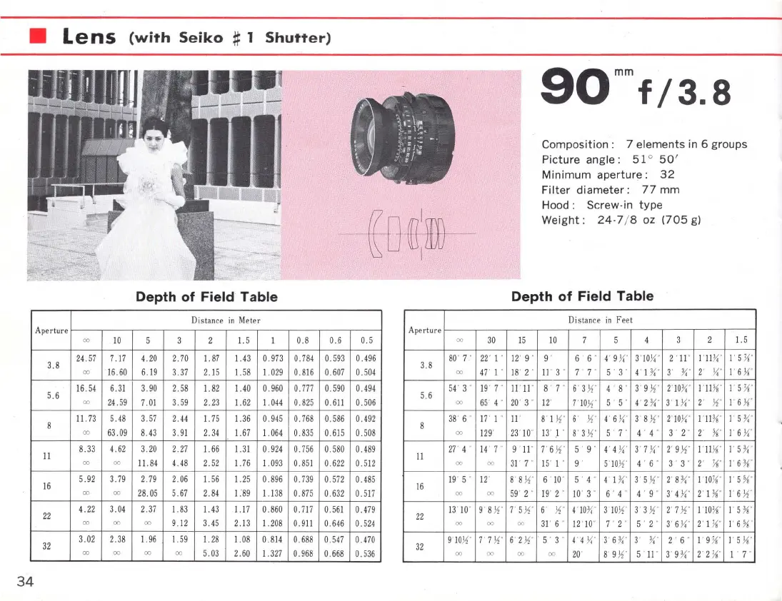 Mamiya RB67 - 90 mm f;3.8 Lens Details; 90 mm f;3.8 Specifications; 90 mm f;3.8 Depth of Field