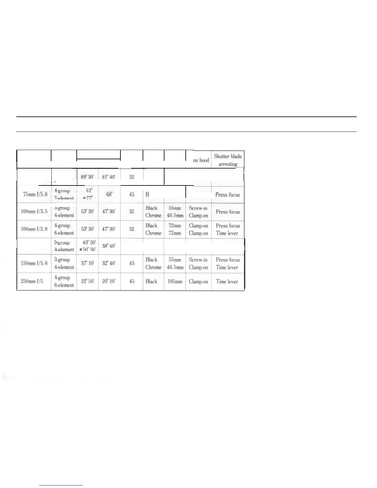 mium type lens, the 100 mm f/3.5 and 150 mm
