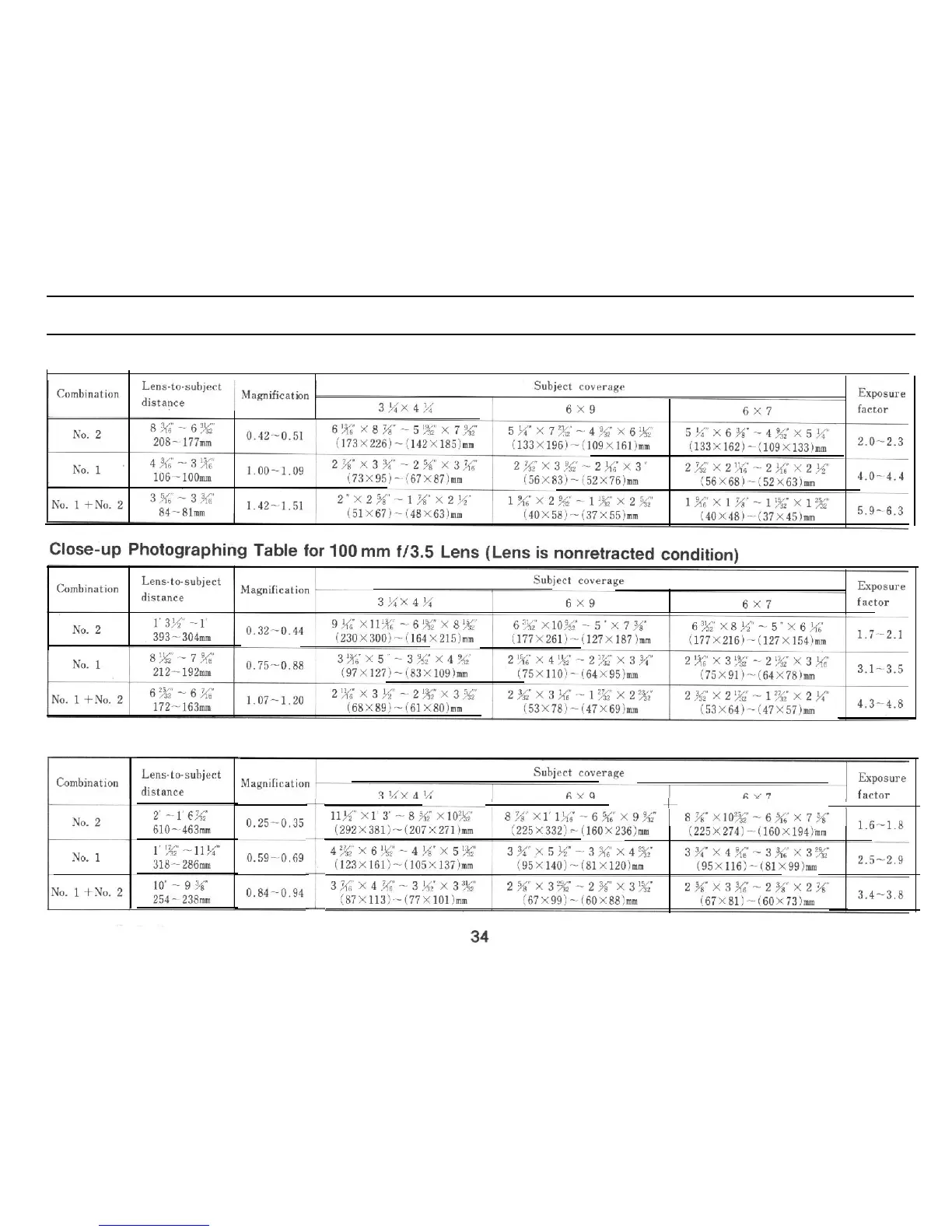 Close-up Photographing Table for 127 mm f/4.7 Lens