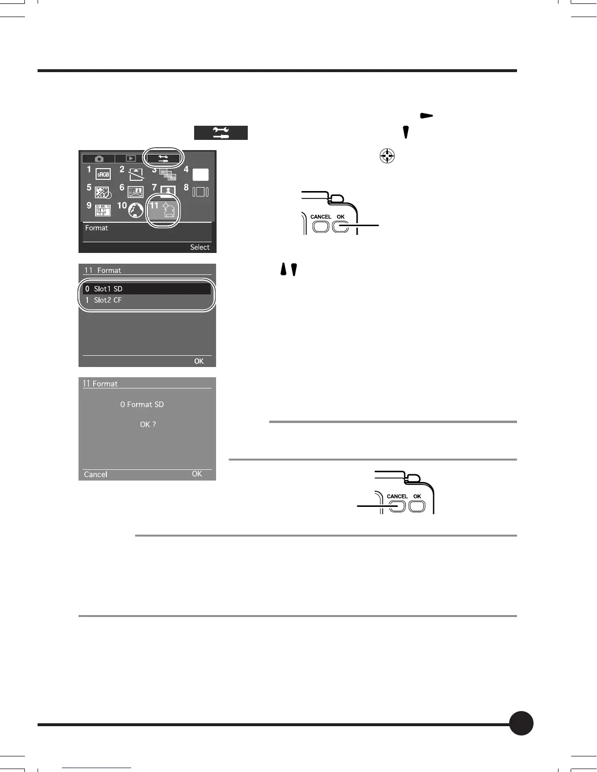 •To cancel formatting, press the Cancel button. The display