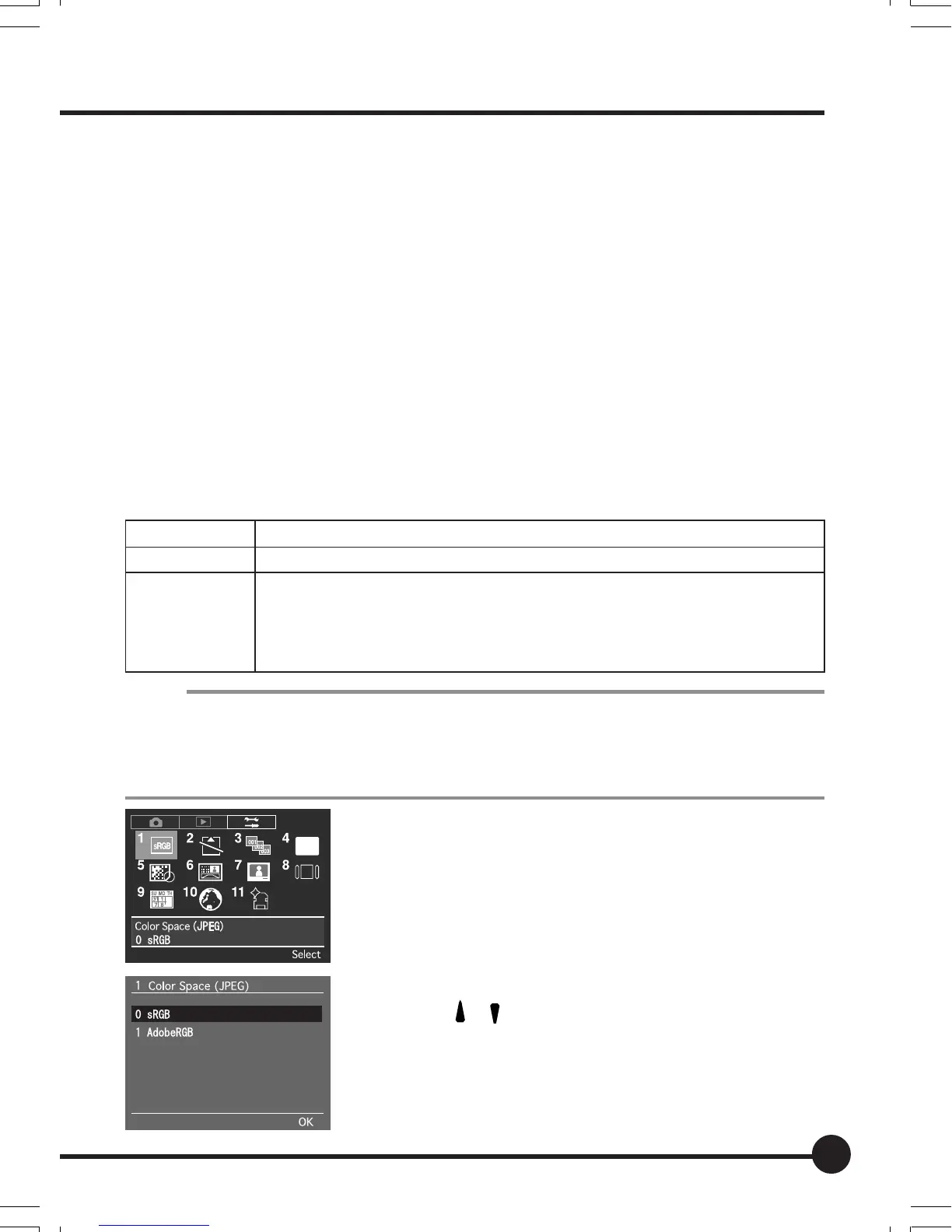 You can set the color space of JPEG images. The default setting is [sRGB].