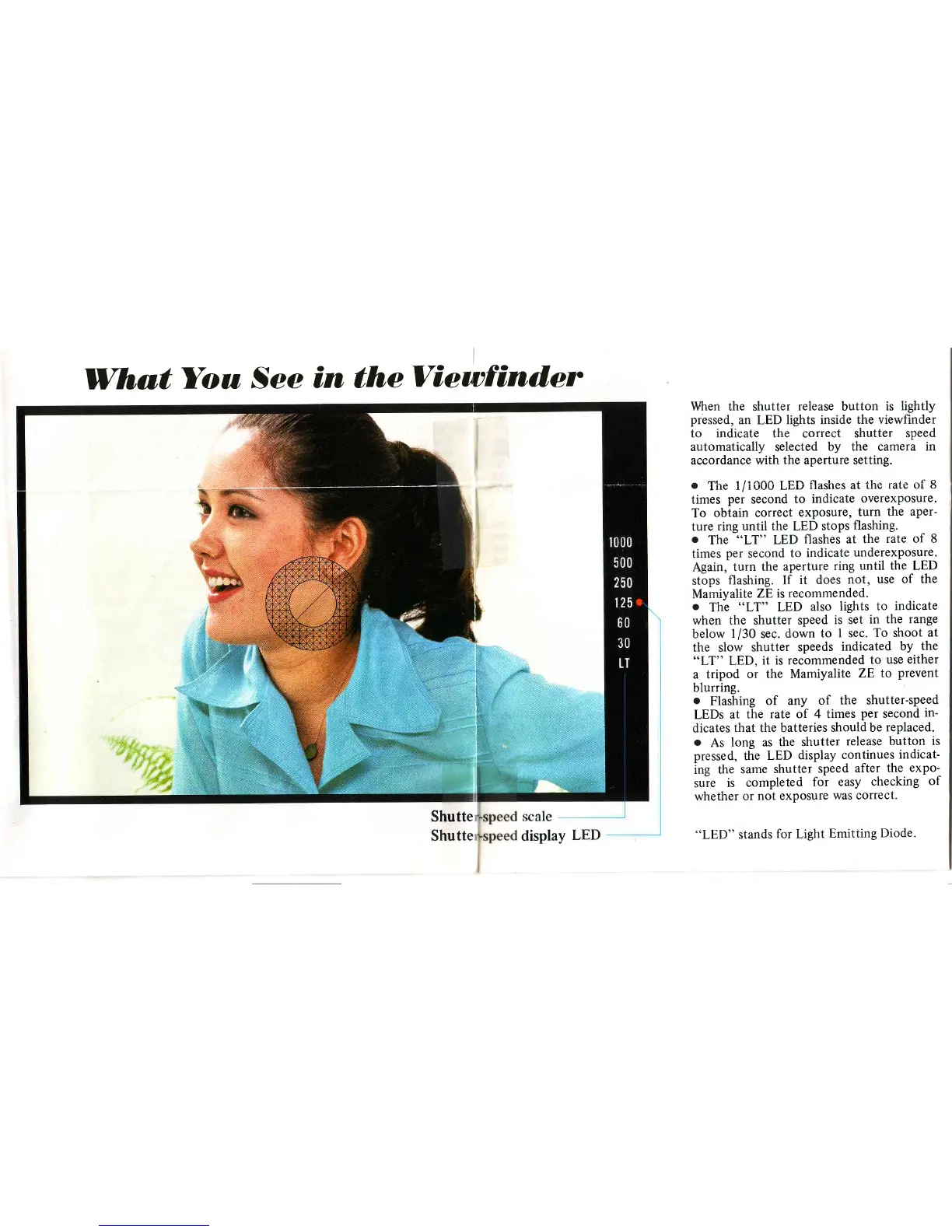 Mamiya ZE - Viewfinder Information Display; Viewfinder LED Exposure Indicators