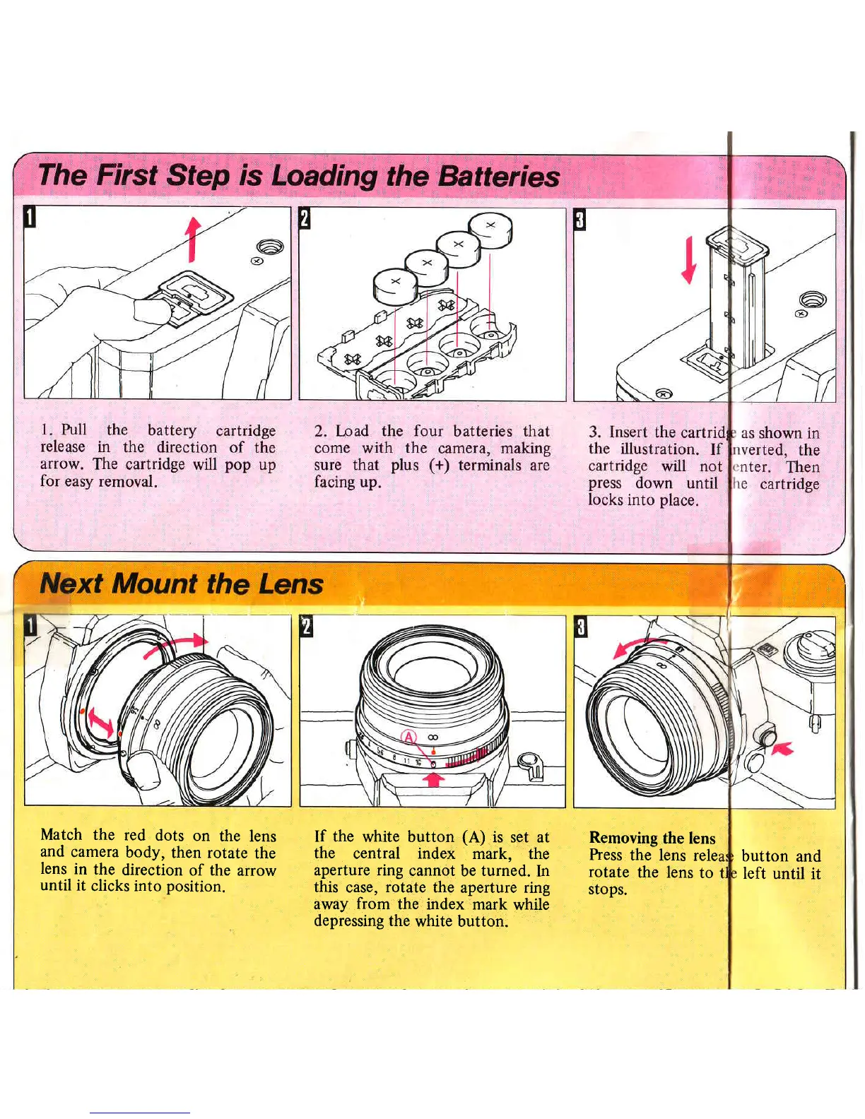 Mamiya ZE - Initial Camera Setup Procedures; Loading Batteries; Mounting and Removing Lenses