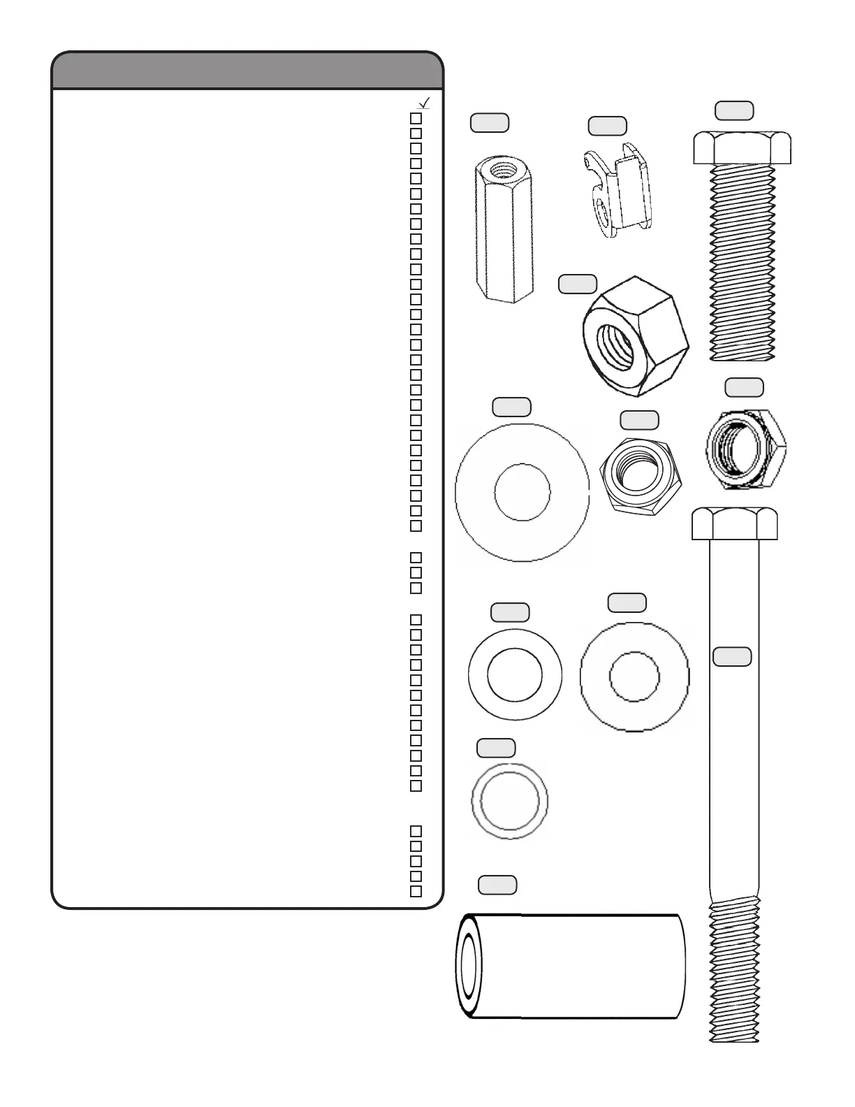 (Hardware is already assembled on 3/8” Hex Bolt)