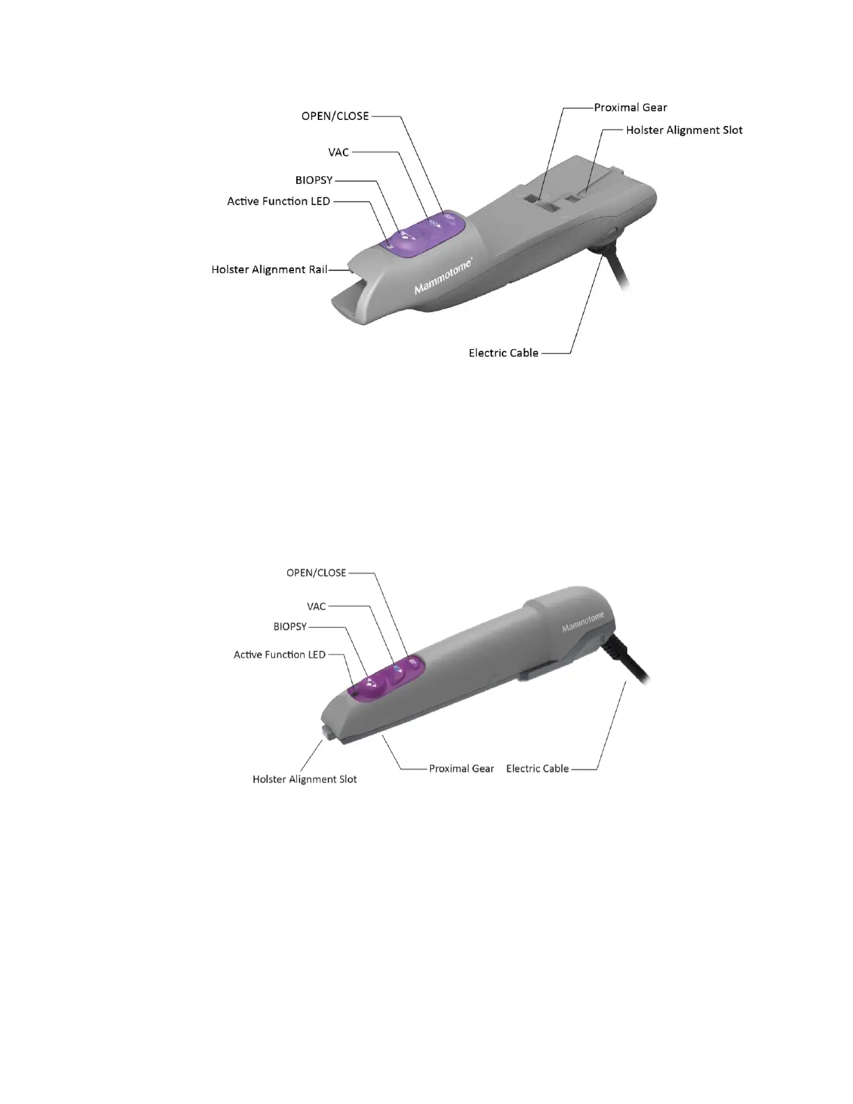 The Mammotome revolve EX Holster is a non-sterile, reusable instrument with one electrical cable for