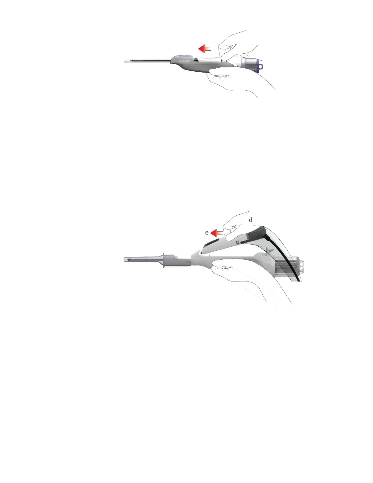 d. Grasp the holster (with or without sleeve attached) and move toward the middle of the probe body.
